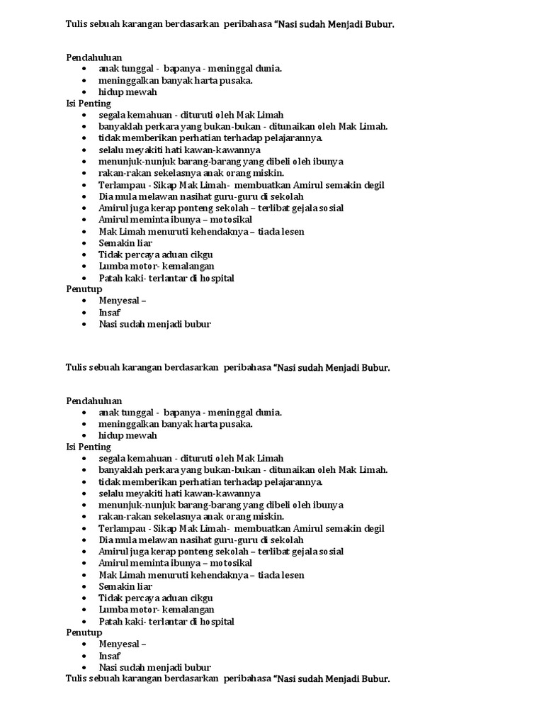 Pelajari Bm Bersama Sama 1 Hari 1 Pepatah Nasi Sudah Menjadi Bubur from 2.bp.blogspot.com Ada yang tahu bagaimana cara. Namun, semua itu tidak membuat cinta saya luntur pada bubur. Sudah terlanjur, tak dapat diubah lagi. Download your search result mp3, or mp4 file on your mobile, tablet, or pc. Amir menyesal kerana sikapnya yang malas belajar menyebabkan dia gagal dalam peperiksaan, namun nasi sudah menjadi bubur. Download lagu nasi sudah menjadi bubur mp3 dapat kamu download secara gratis di metrolagu. From malay nasi sudah menjadi bubur. Ia mengatakan sudah mengkaji kriteria usaha kecil dan menengah di berbagai negara.
